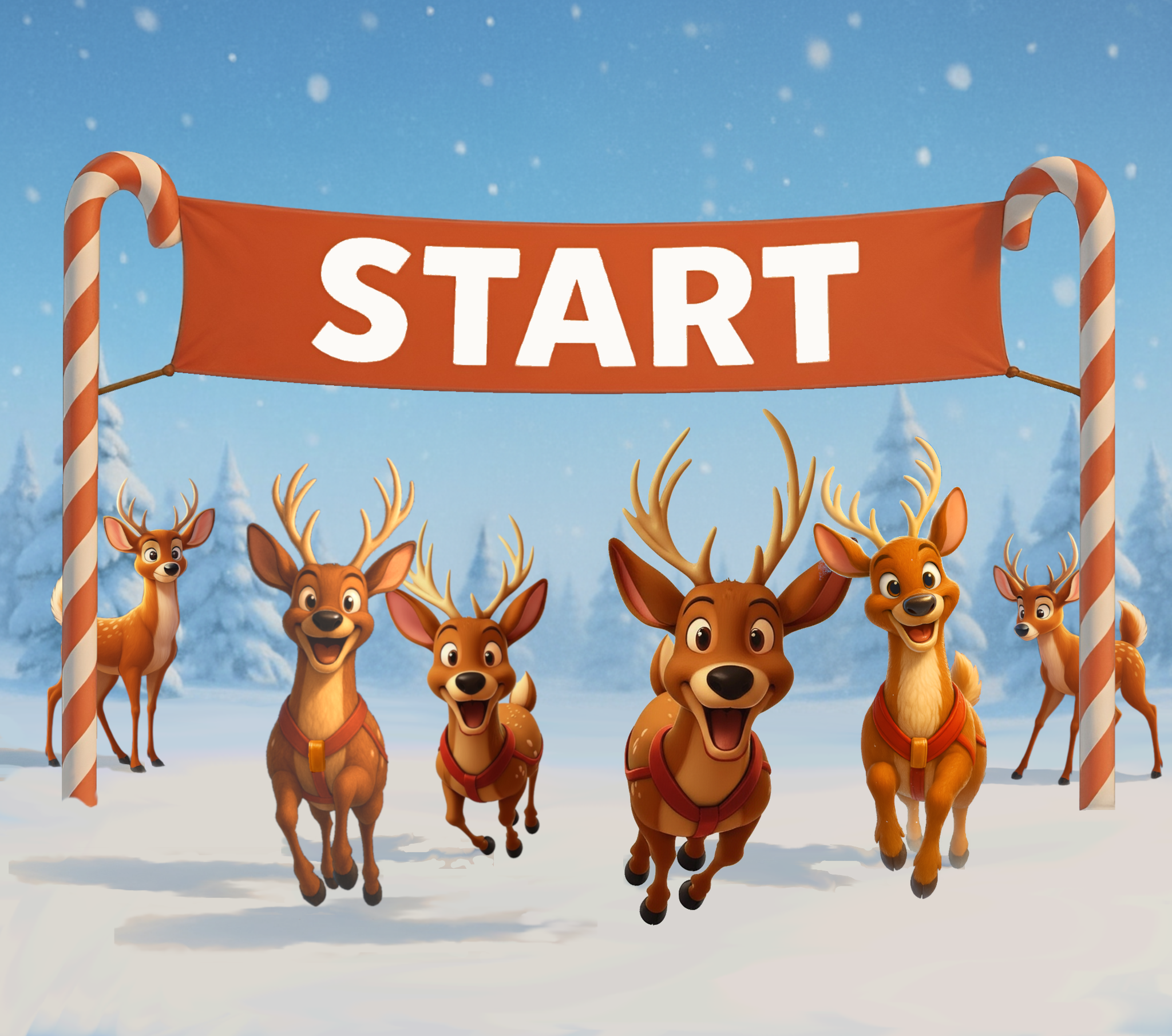 Today marks the annual Reindeer Races. Headlining the finalists are Vixen, Donner, Dancer and Prancer. The favorite, of course, is Dancer who has come off an undefeated season with 5 wins and 0 losses. It's sure to be an incredible event as the training this year introduced the reindeer 'log-lift-reps.' Imagine pulling against your peers!
